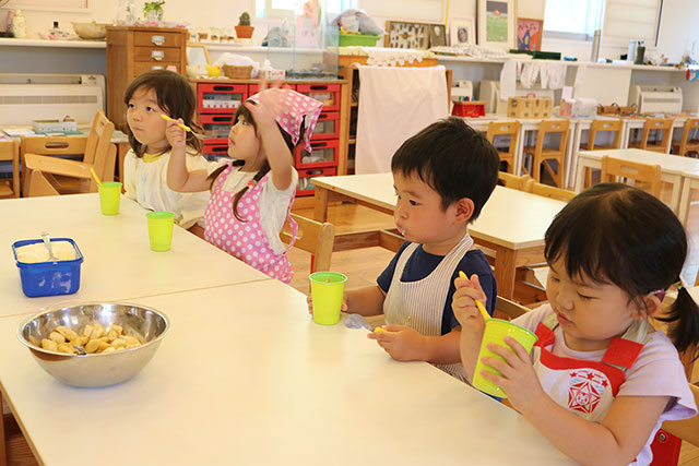 吉見光の子モンテッソーリ子どもの家では、モンテッソーリの活動(モンテッソーリではお仕事と呼びます)を通して、子どもたちが豊かな自分を創るお手伝いをしています。 2歳児になるお子様を対象に、プレスクールを行います。